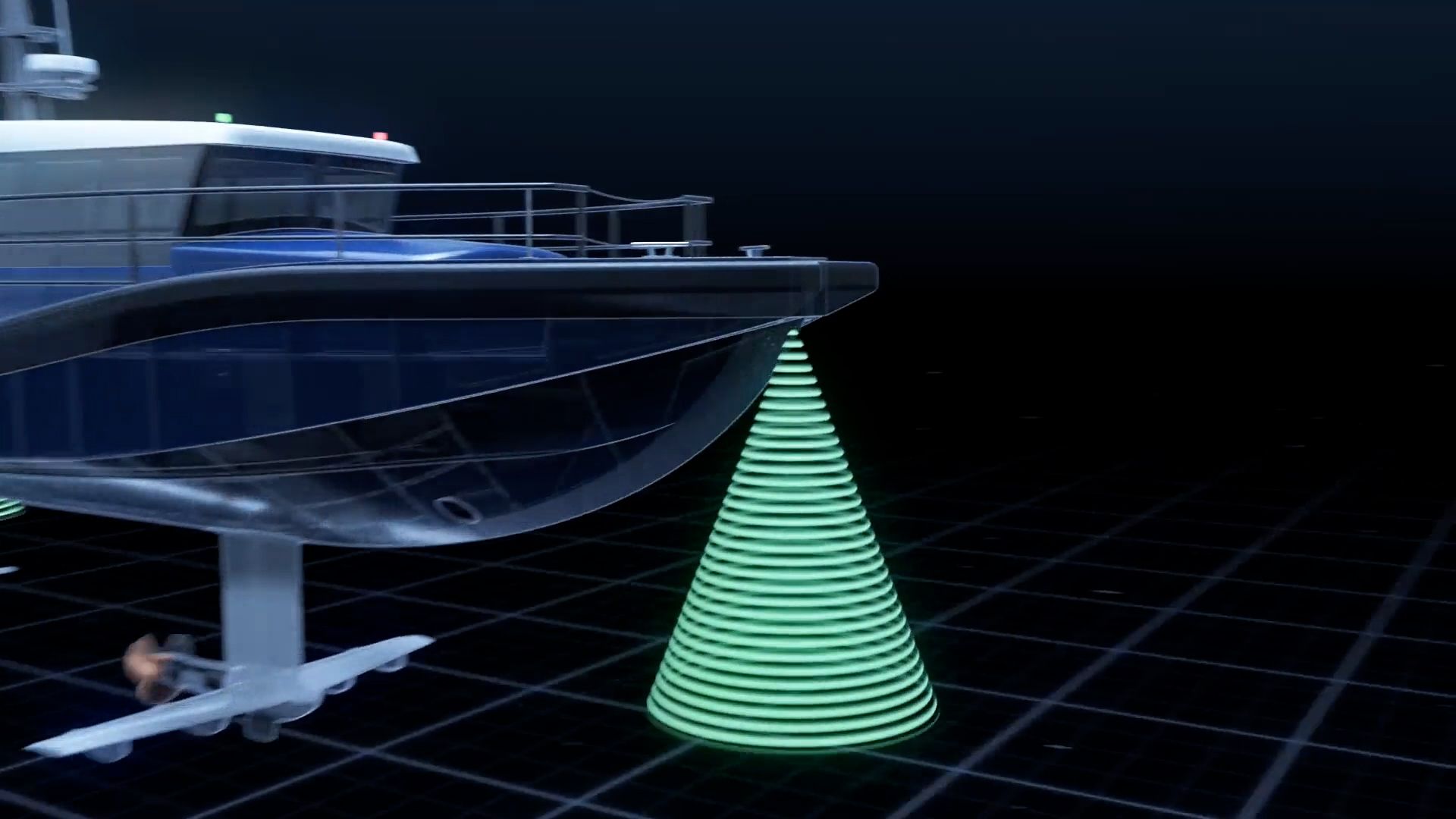 Aft hydrofoil acts as a rudder to steer under propulsion, with thrusters to assist in low speed manoeuvres.